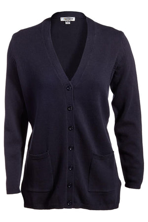 View full detailsEdwards This Ladies' long v-neck cardigan flatters a woman’s curves. Perfect for the office; this soft Cotton cardi is stylish and functional. Embr...