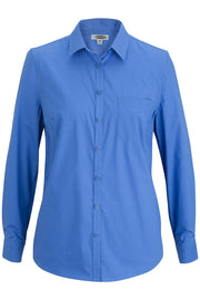 Edwards This ladies' long-sleeve stretch poplin blouse is a must have for active ladies. Tailored fit; comfort stretch and feminine detailing will have you looking great during your busy day. Works well for servers; drivers and guides. Companion style is 1246