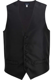 This hospitality vest is made with a machine-washable premium jacquard fabric. The subtle diamond pattern adds texture and a unique look to your uniform. The vest features a 5- 5-button closure with faux welt pocketing. An adjustable waist strap allows you to tailor the fit to a slimmer silhouette.