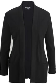 Edwards Ladies' open cardigan with turn-back shawl collar has a flattering silhouette with a smooth and easy drape. Soft and delicate this fine gauge sweater complements any outfit. Perfect for the office or out on the town. Companion style is #4072